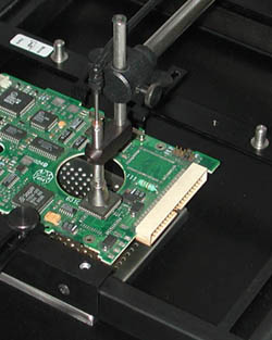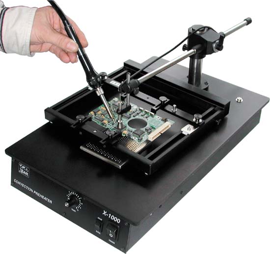 Semi-Automatic Vacuum Pick-up conveniently lifts the component upon re-flow of solder during de-soldering of SMT components. Semi automatic pick up prevents unnecessary heating of the solder connections and the parts on the board when solder is already molten. This System increases efficiency and reliability of rework. When used with SMT-ServiCE the XCP-01 is connected to the vacuum pick-up source of these units. If the unit is intended to work with other system than SMT-ServiCE the external vacuum source is required. X-KAR units such as XVP-200, XVP-100, XVB-1 are a good choice. One can also use other manufacturers vacuum units working quietly and providing vacuum of 200mmHg or more.